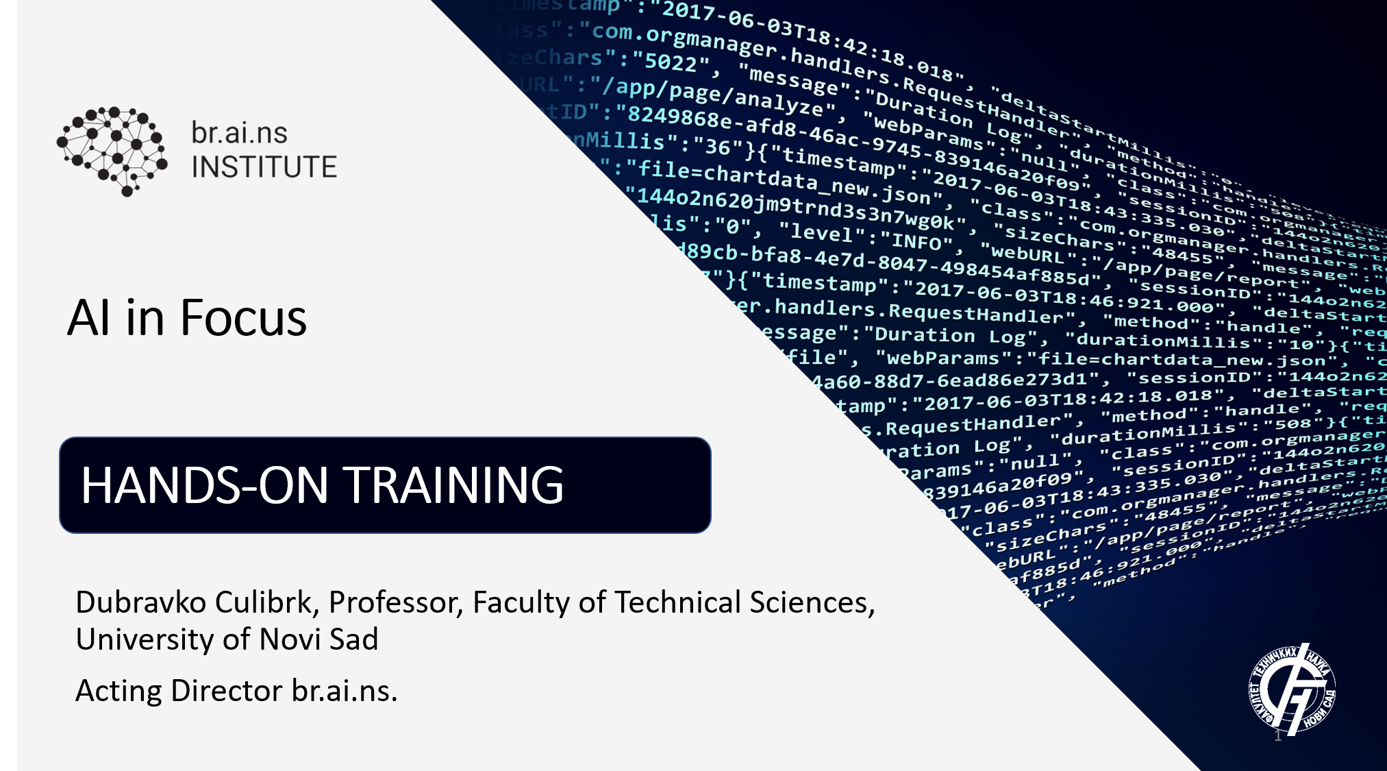 Organizer: Dubravko Culibrk, Professor, Faculty of Technical Sciences, University of Novi Sad, Acting Director br.ai.ns.
